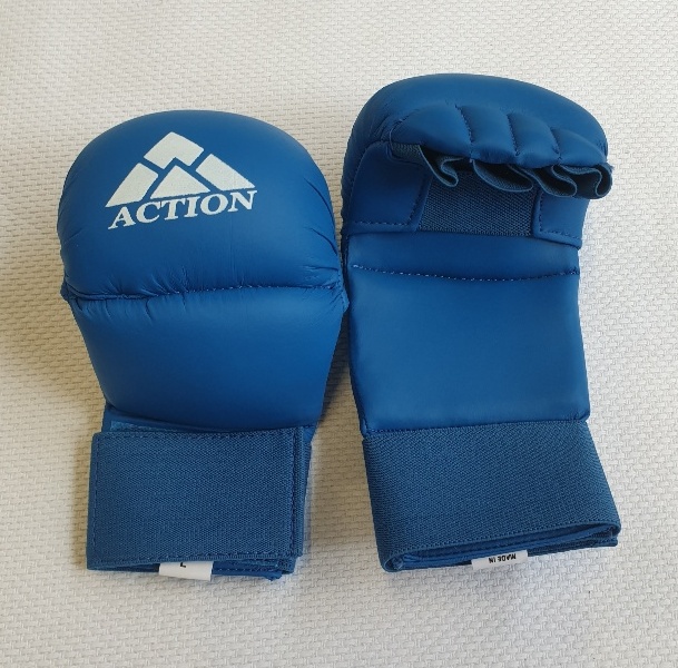Karate or TKD Mitt for light sparring. PU outer, padded inner with finger inserts. Blue