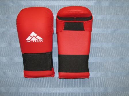 Karate or TKD Mitt for light sparring. PU outer, padded inner with elastic finger strap. Red